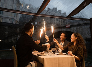 Get your crew together at the dock at least 15 mins before departure. Bring some food and drinks or pre-order a catering package.